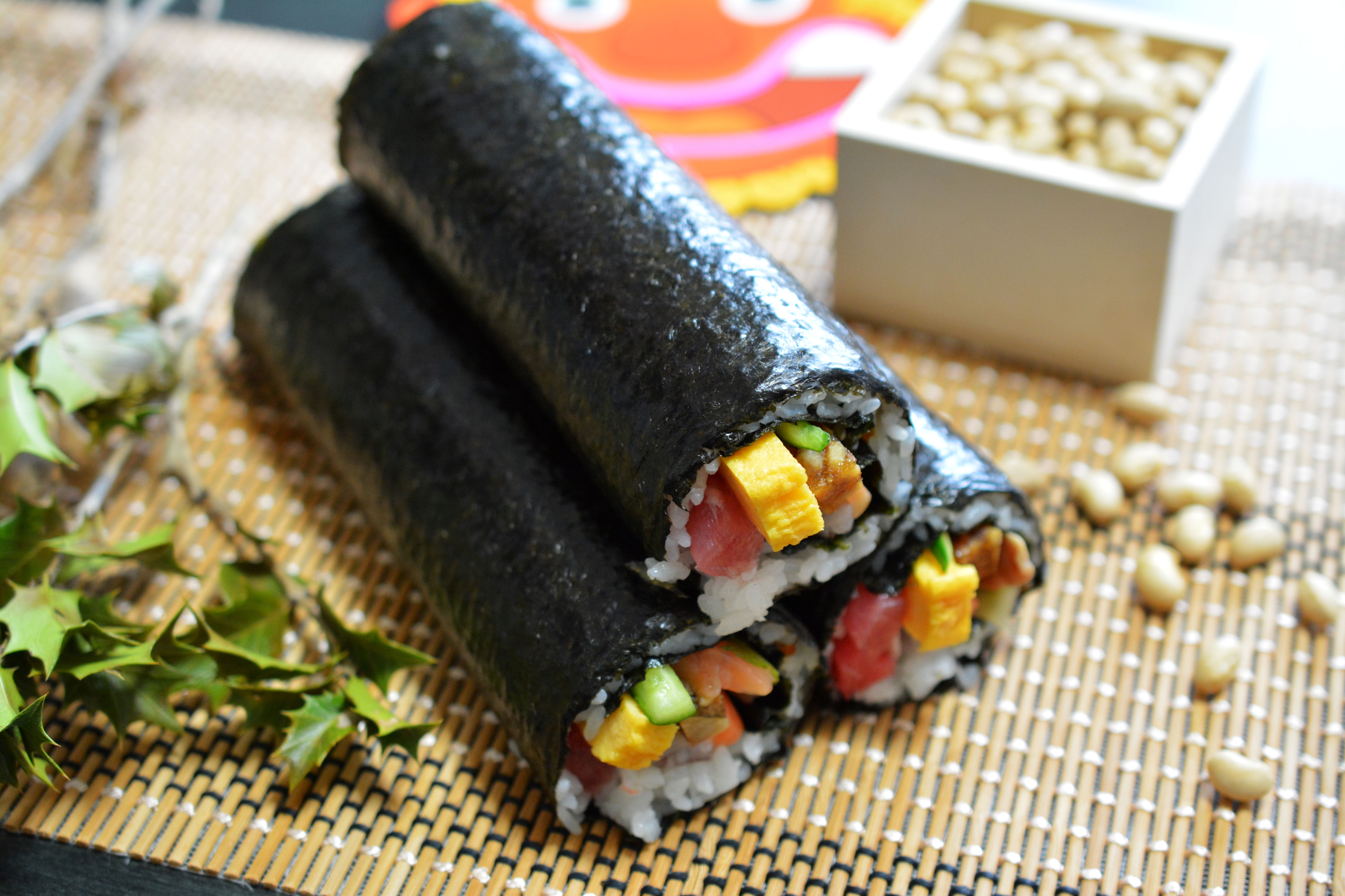 節分といえば豆まきや恵方巻。恵方巻の具材は7種類で七福神にあやかるとして